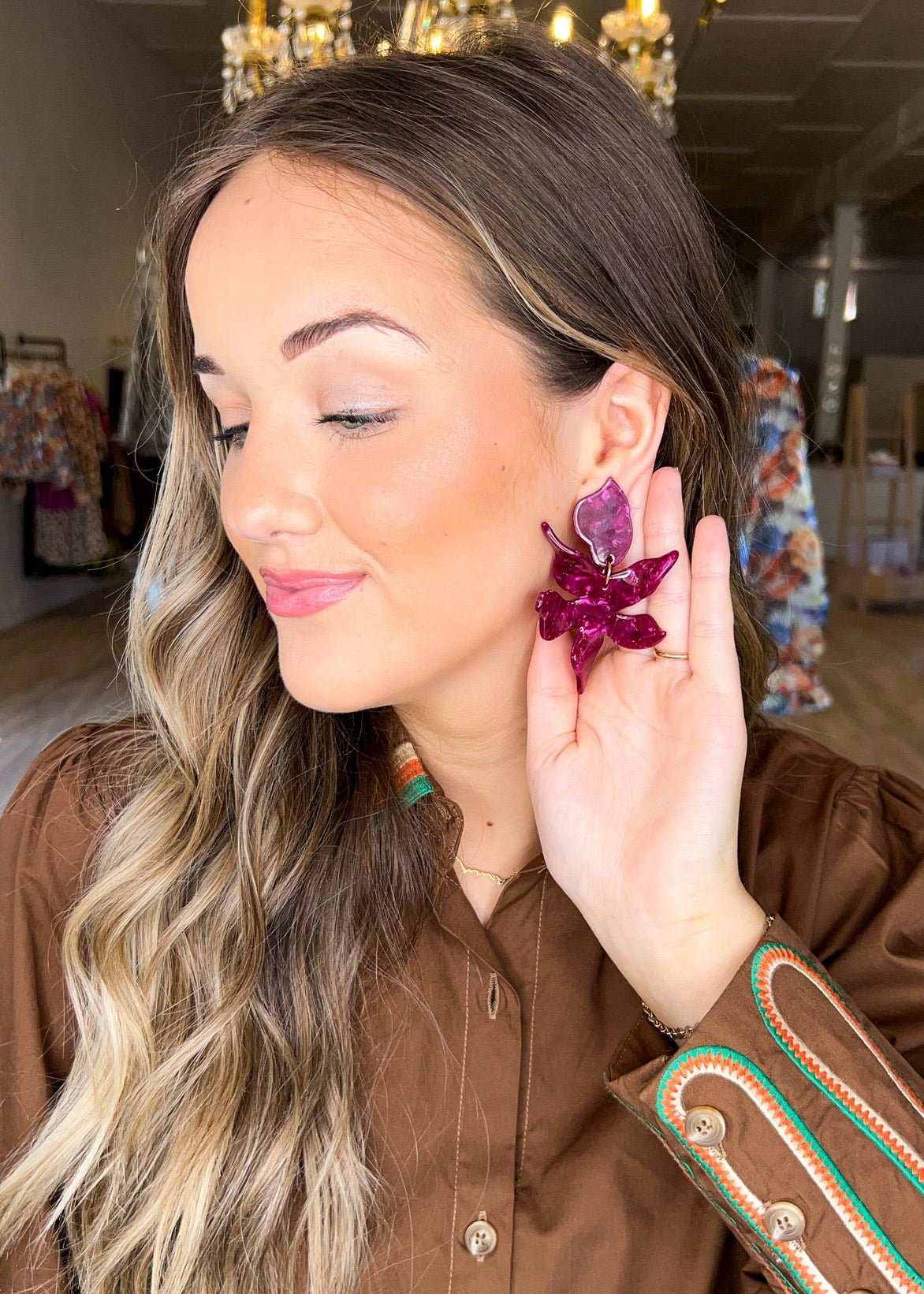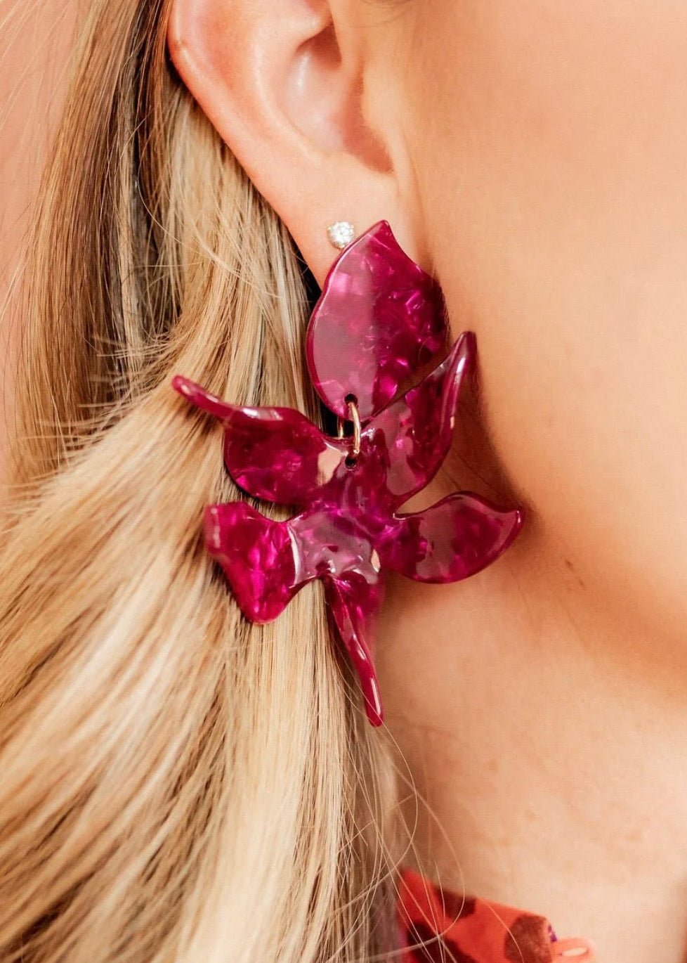 Introducing our Flora Statement Earrings in the elegant shade of Pinot Noir! These trendy fall accessories will add a touch of chic beauty to any outfit. Upgrade your style game with these statement earrings that exude sophistication.