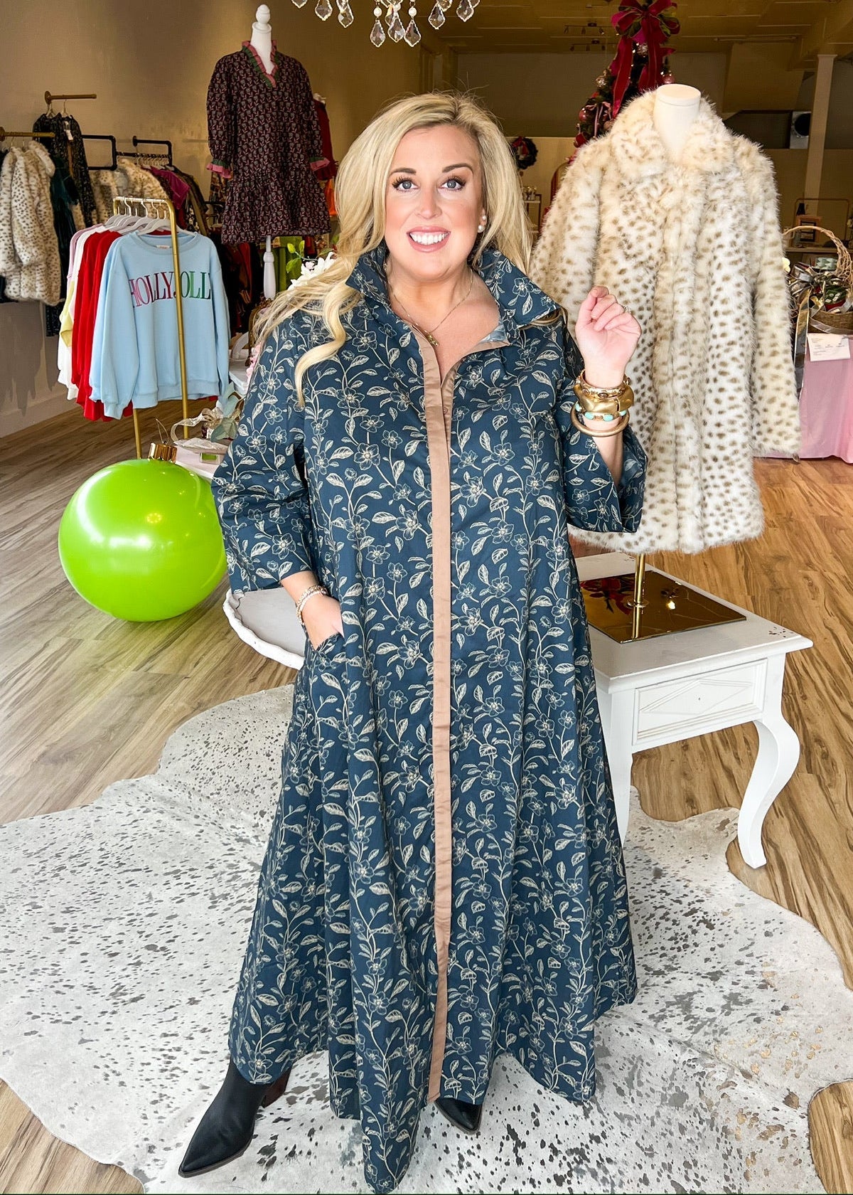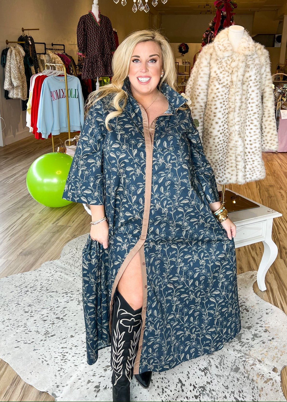 Embrace holiday magic in the Noel Nights Maxi Dress, where festive floral prints meet effortless elegance. This lightweight, flowy number features a fully button-down front, long sleeves, and a relaxed loose fit that moves with you through every celebration. Practical pockets keep your essentials close while you dance, mingle, and create memories. Perfect for seasonal gatherings and cozy winter nights with style.