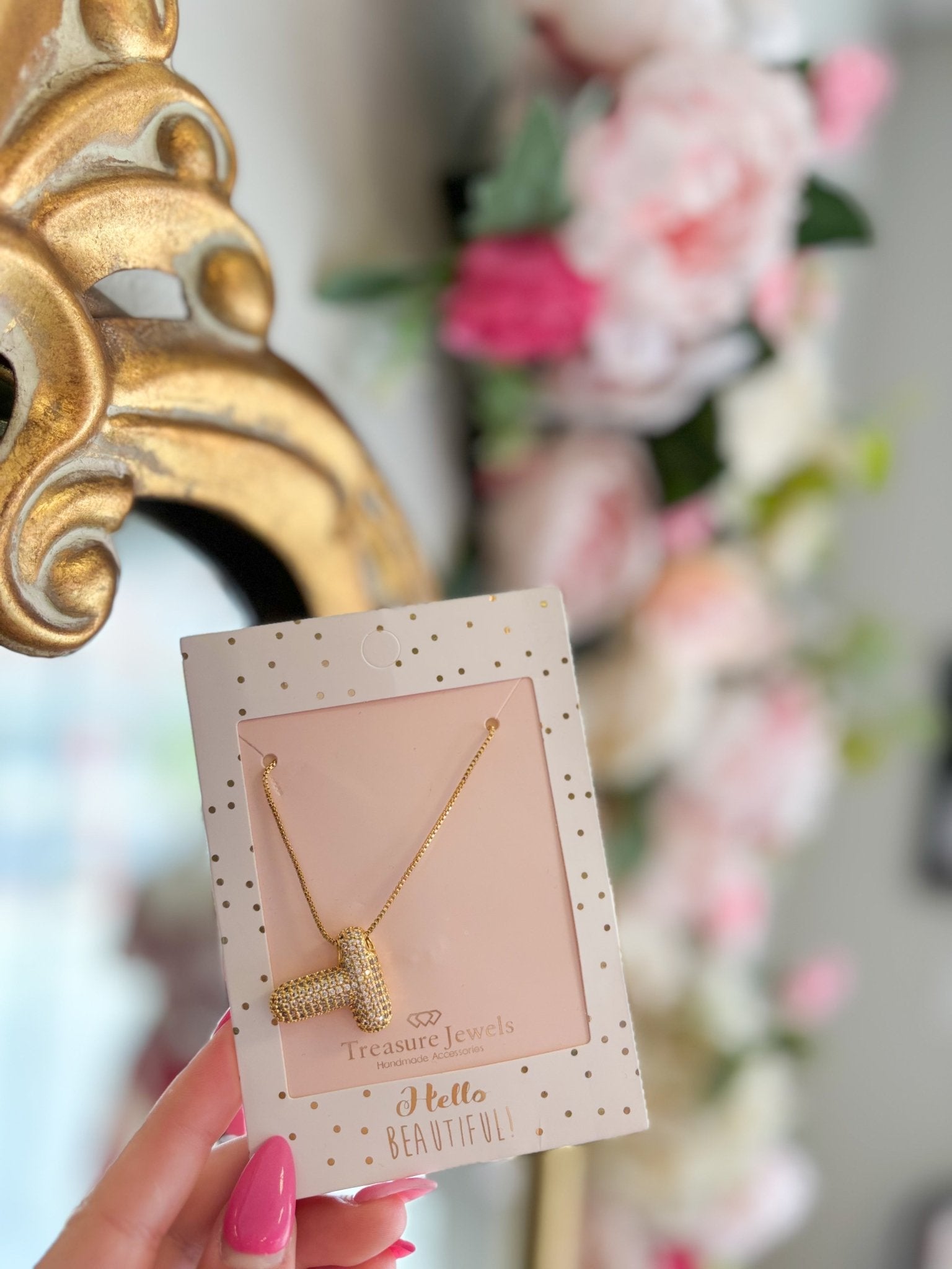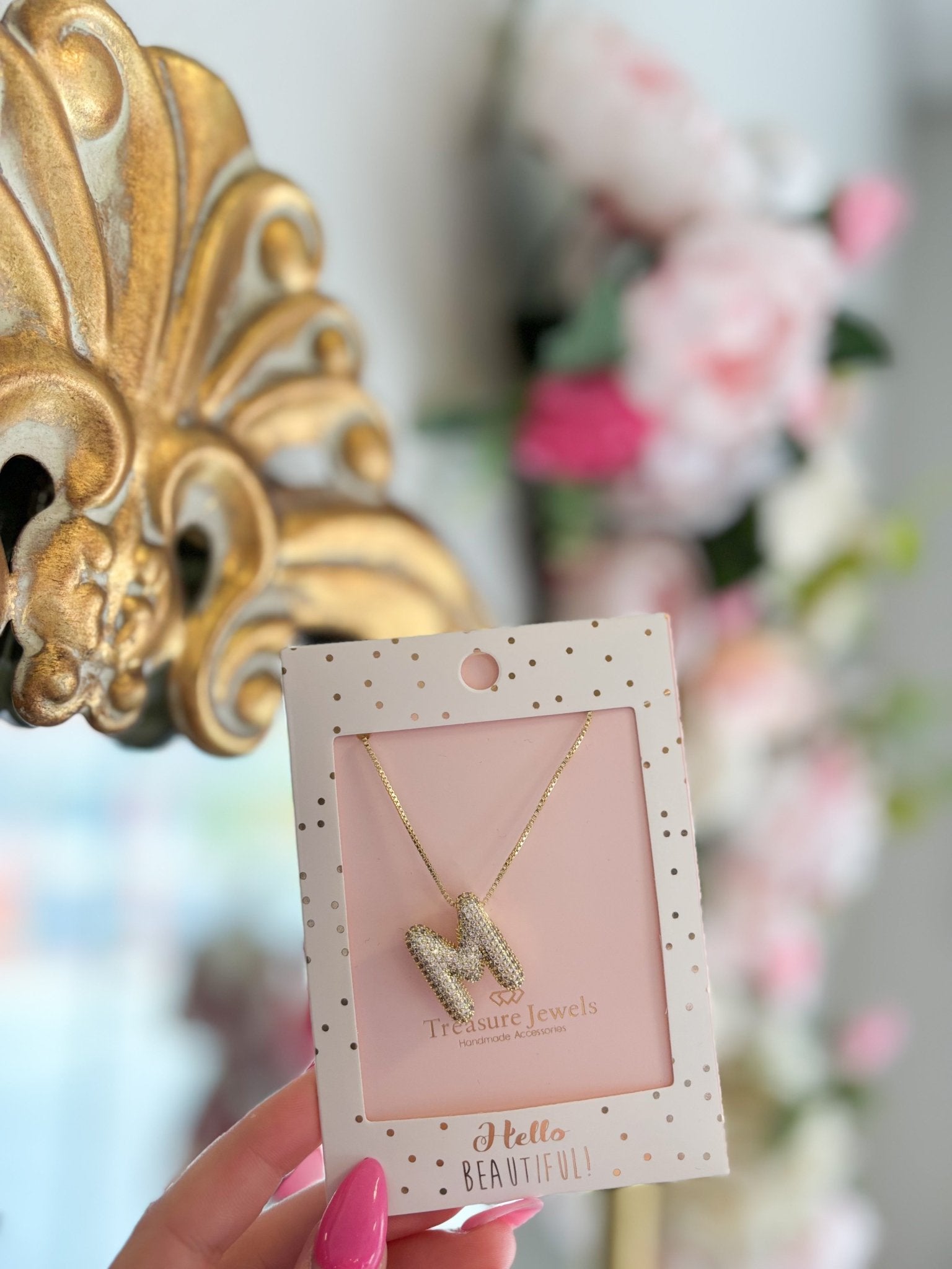 The moist gorgeous accent to any necklace layering, the Gold Crystal Balloon Initial Necklace is a must have! Bling design, 18K Gold Plated with a clear coat makes it long lasting and tarnish free