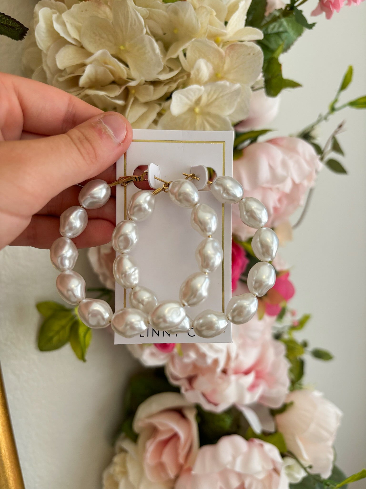 Features: pearl hoops
