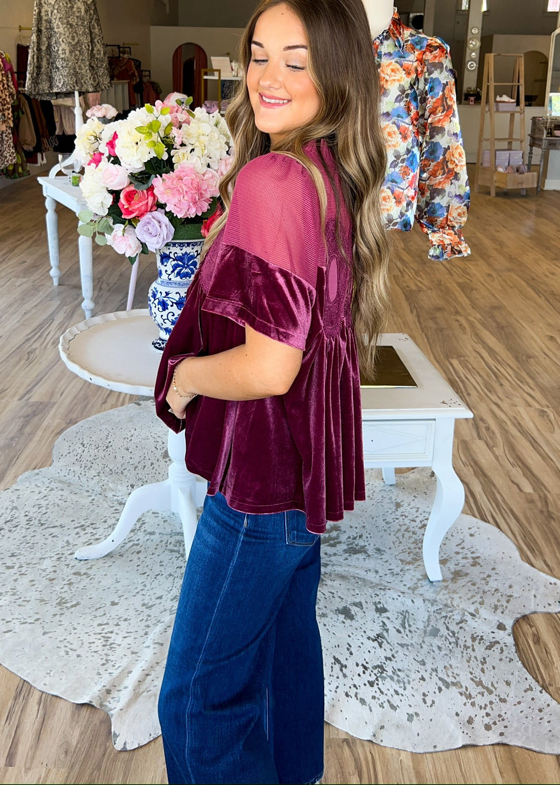 Get ready to be the picture-perfect couple in our Boho Velvet Top! Made with soft velvet bottom half and a playful mesh top, this short-sleeved fall top is perfect for all occasions. Dress it up for a night out or take some couple pictures in it - either way, you'll look effortlessly stylish.