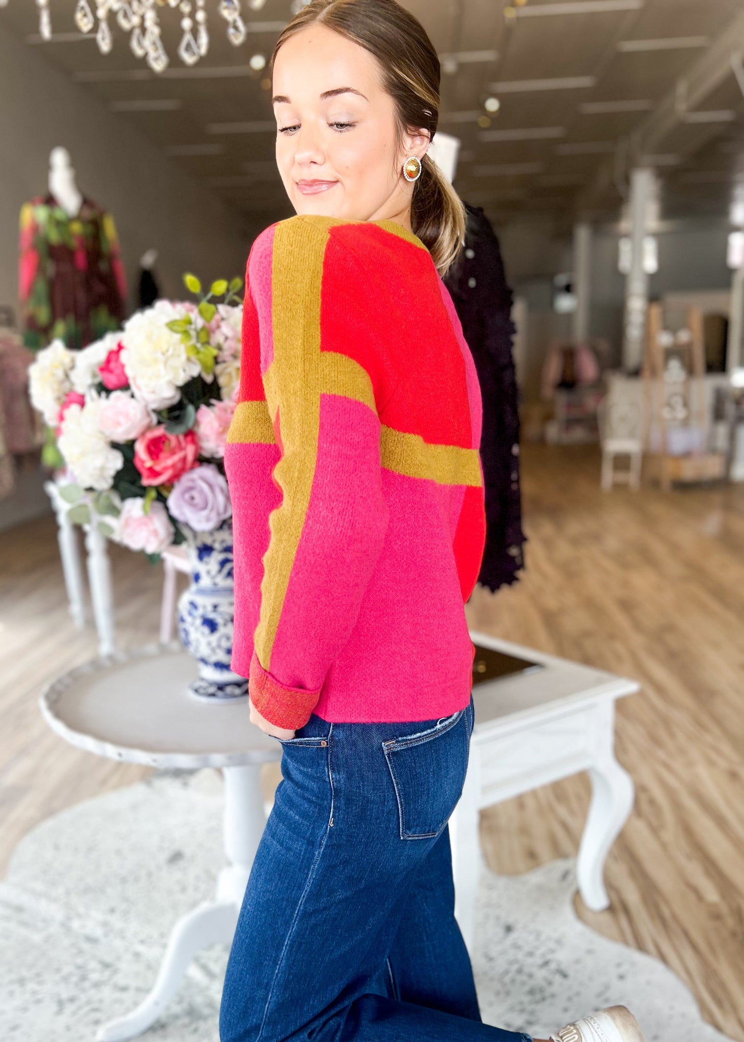 Elevate your holiday wardrobe with this Country Club Thanksgiving Cardigan, where preppy charm meets cozy comfort. Featuring a chic color block design and gleaming gold button details, this thick, high-quality knit is built to last through countless gatherings. Perfect for layering over your favorite dress or pairing with tailored trousers, it's the effortless piece that says you've got style—and maybe a few secrets up your sleeve.
