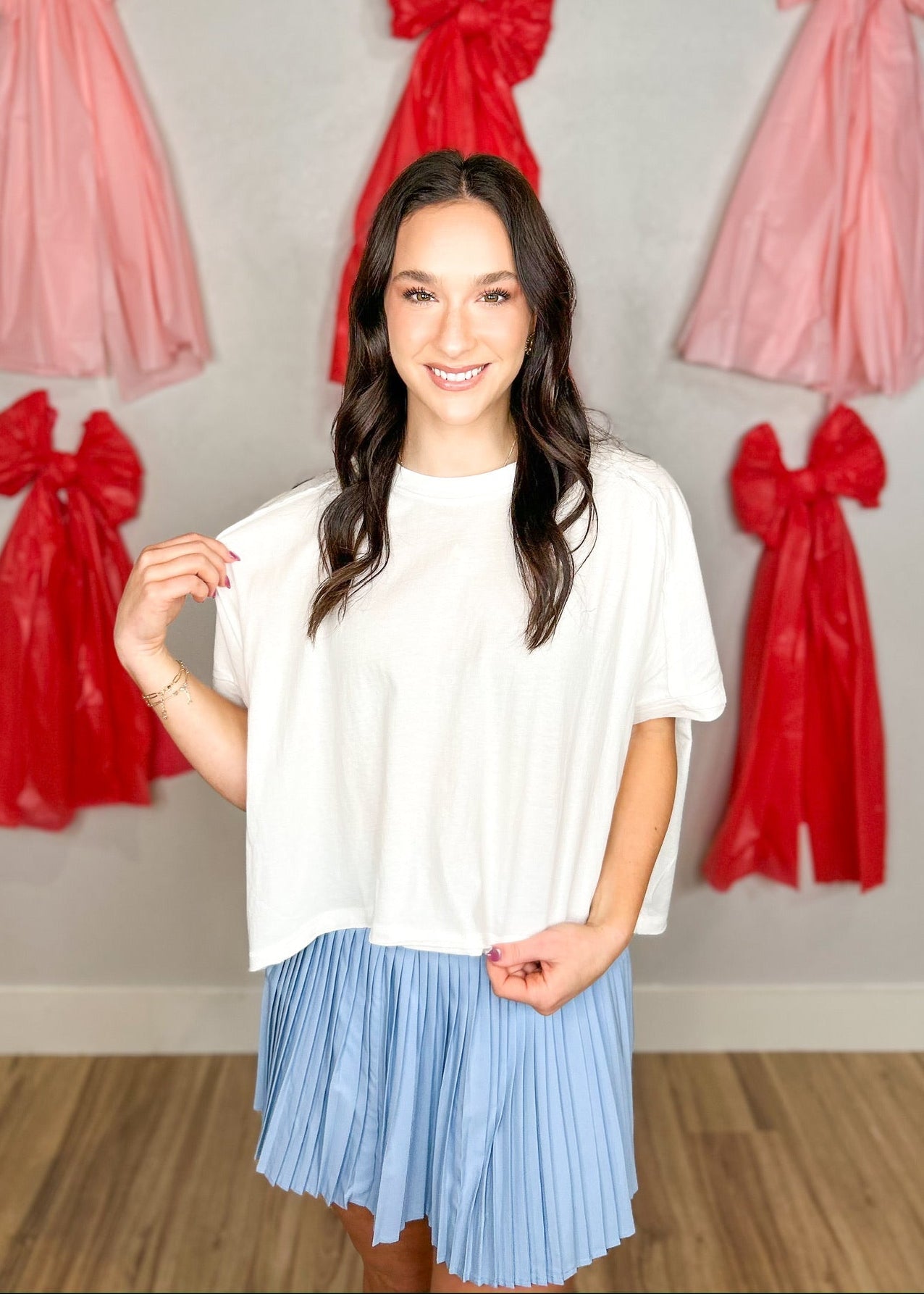 Say hello to the No BBQ Stains Top – your new go-to for sizzling summer gatherings (minus the sauce splatters, of course!). This basic cropped white wonder is perfect for showing off your grill skills while keeping things chic. This top is lightweight and has a boxy fit with raw hem detailing. Who says you can't look fabulous while fighting the BBQ battle?