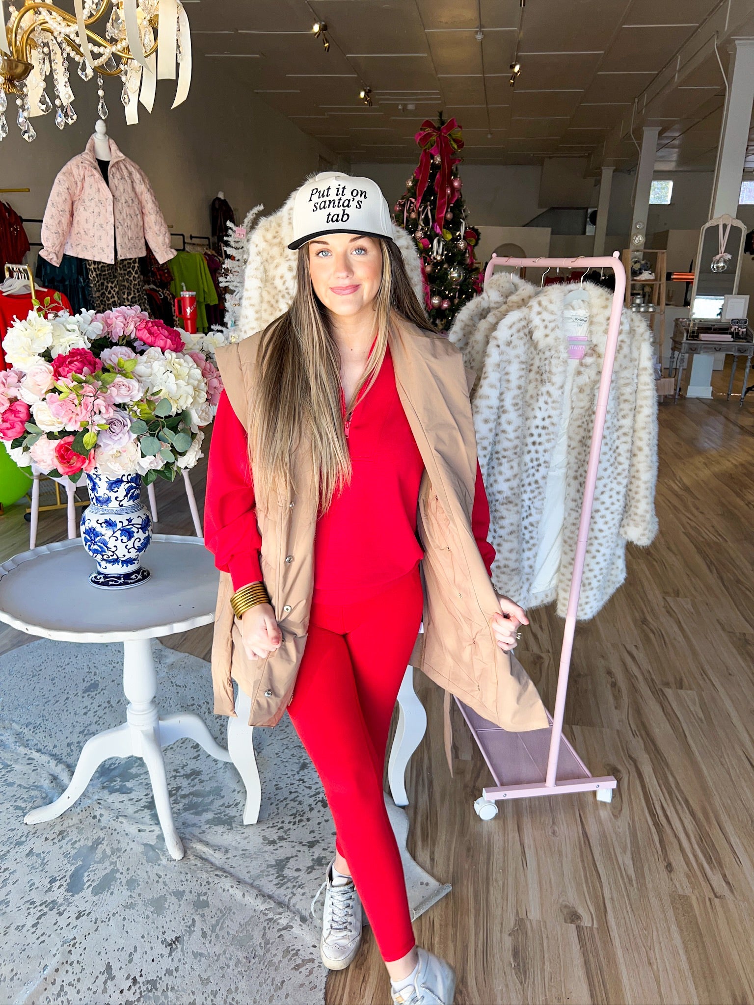 Rock a playful vibe with this trucker hat featuring embroidered script writing that reads "Put It On Santa's Tab." The structured design keeps its shape while the classic snapback closure ensures a perfect fit every time. Whether you're spreading holiday humor or just love a witty accessory, this hat delivers personality with comfort. Perfect for casual outings, festive gatherings, or anyone who appreciates a good laugh.