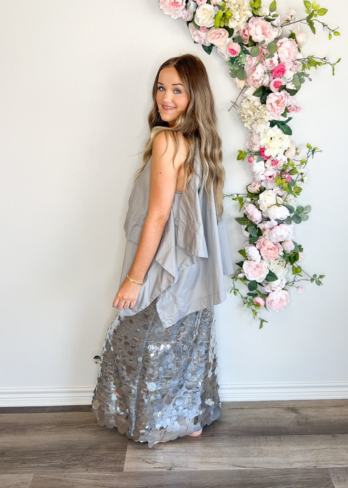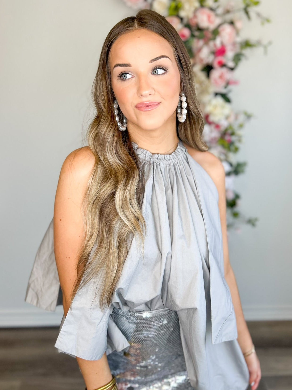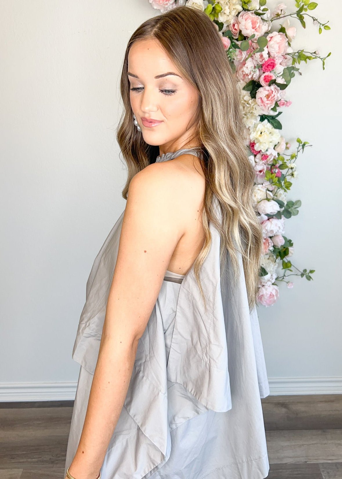 Obsessed with this stunning top! Playful style with a bow in the back. Neutral color adds versatility. Perfect for any occasion. (Seriously, we can't get enough of this top!)