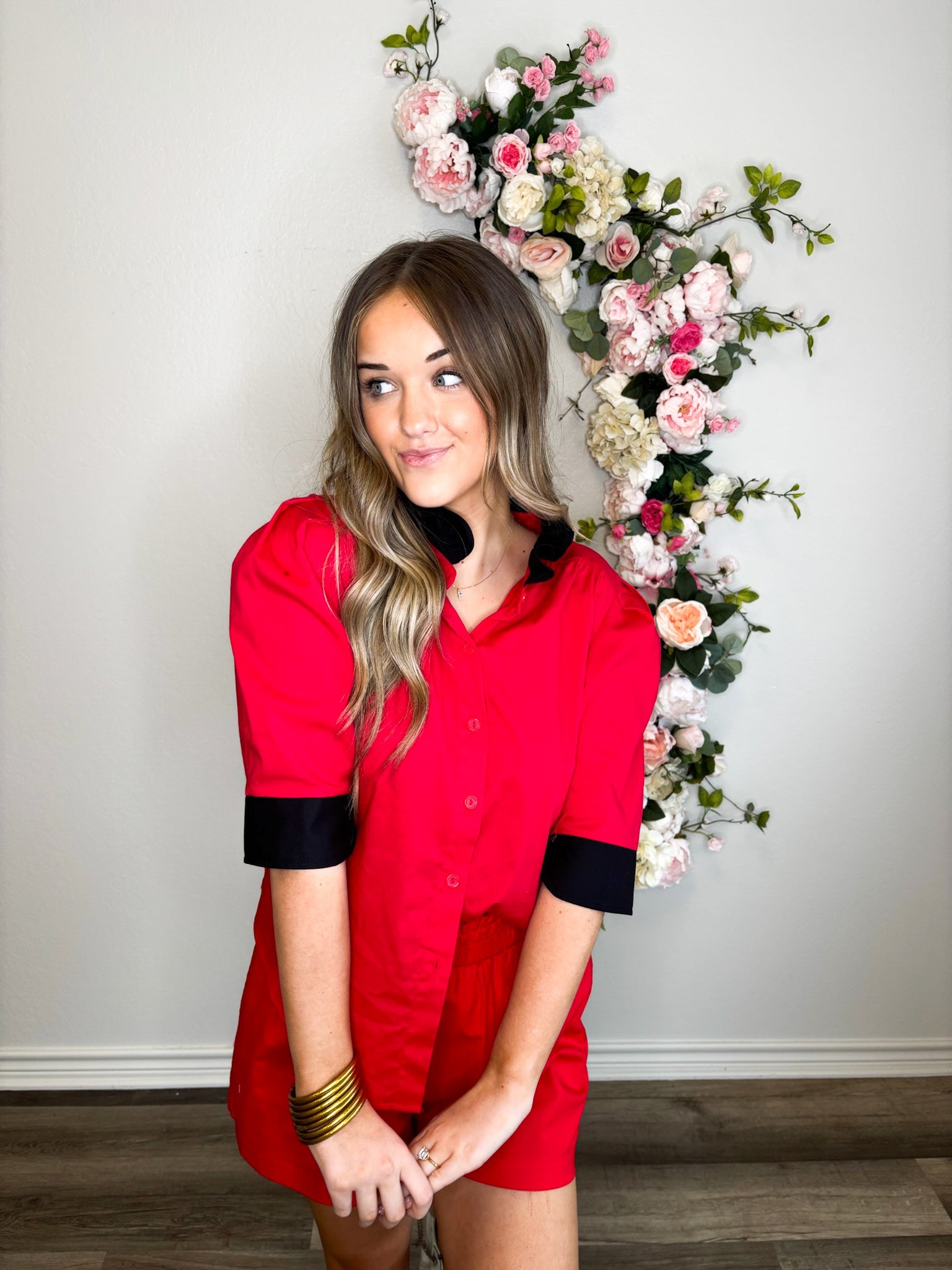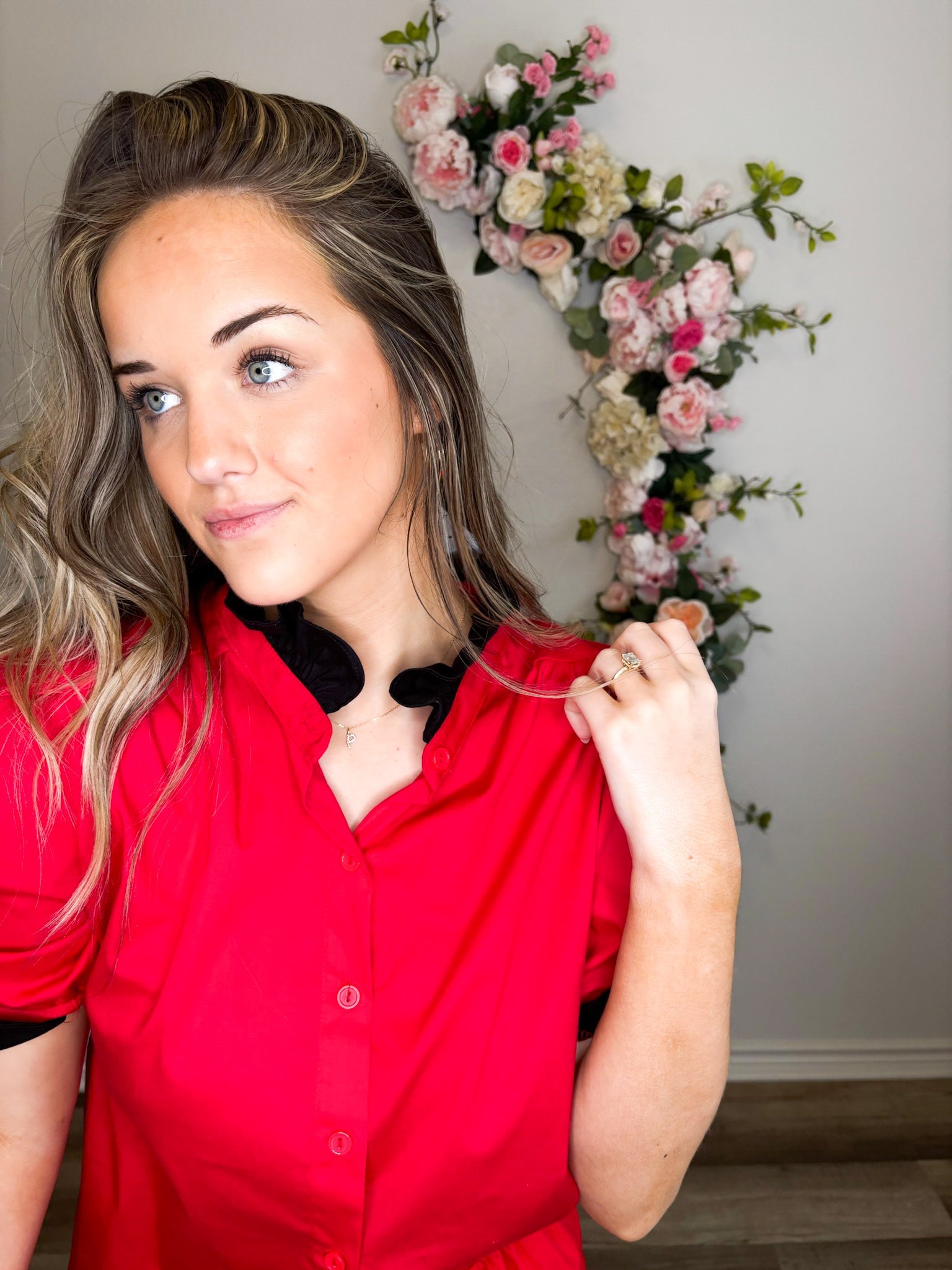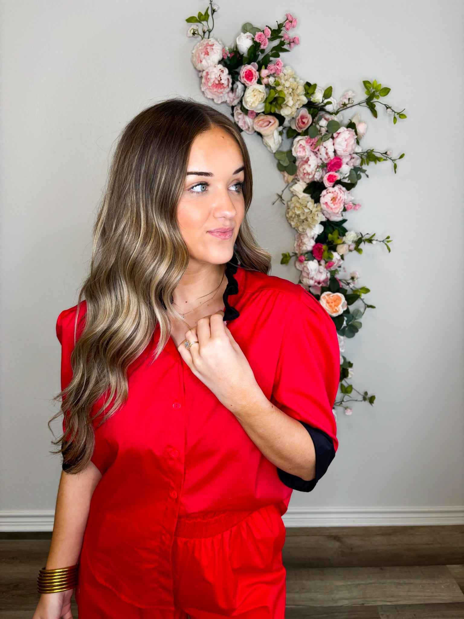 Get flirty with our Get Your Guns Up Top! This playful top features a stylish ruffle collar and trendy quarter sleeves, perfect for a day out. The pleated shoulders add an extra touch of charm to this button-up beauty. Rock this top all day, every day and don’t forget the matching bottoms!